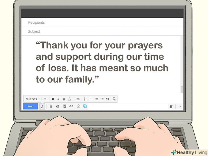Після втрати близької людини може знадобитися багато часу, щоб прийти в себе. Швидше за все, друзі і родичі будуть висловлювати вам підтримку за допомогою листівок з співчуттями, листів, онлайн-повідомлень і вінків. Пам'ятайте, що люди висловлюють співчуття, тому що вони люблять вас і переживають за вас. Дана стаття навчить вас, як відреагувати на повідомлення і добрі жести, коли ви будете готові.