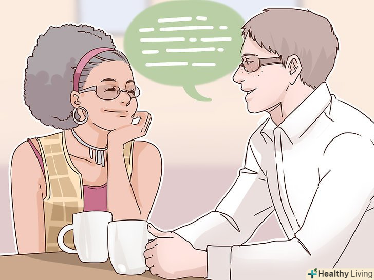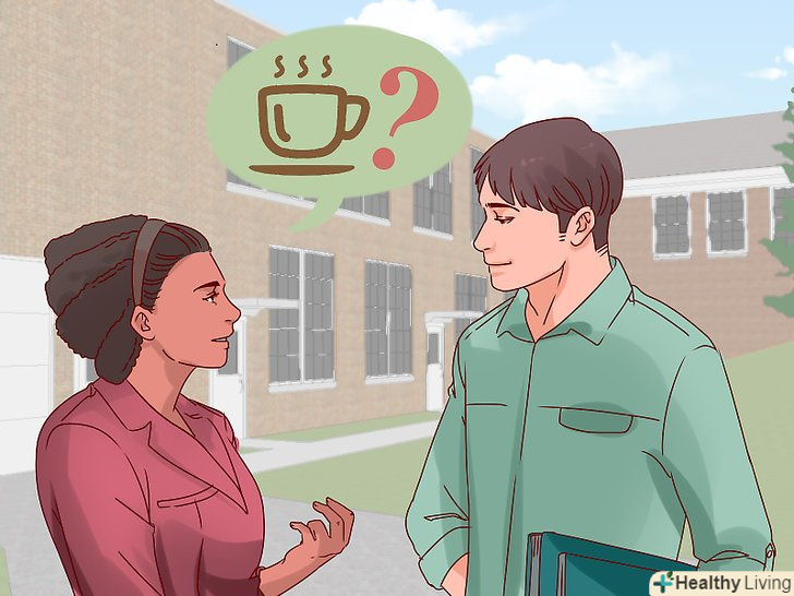 Запросіть людину сходити разом пообідати або повечеряти. неважливо, вчіться ви або працюєте, ви напевно ходите на обід. Якщо у вас обох їжа з собою, можна просто пообідати разом на офісній кухні (або в їдальні, якщо мова йде про школу). Також можна запросити прогулятися разом в кафе на обід. Це хороший варіант, тому що вам обом так чи інакше потрібно пообідати, і це ні до чого не зобов'язує. [7]- Необов'язково йти прямо зараз. Можна запропонувати повечеряти після роботи або зустрітися через пару годин, після того як ви закінчите свою роботу.