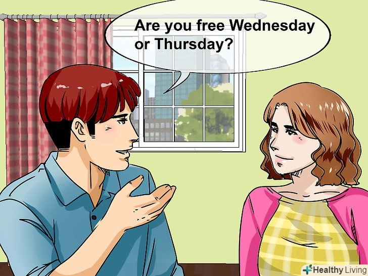 - Можна раз на тиждень виділяти вільний вечір для того, щоб завжди мати можливість призначити зустріч на цей день. Скажіть, що ви, наприклад, завжди вільні по вівторках, і запитайте, чи зможе вона зустрітися з вами в наступний вівторок.