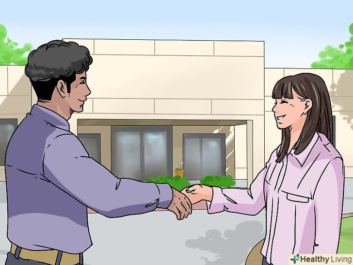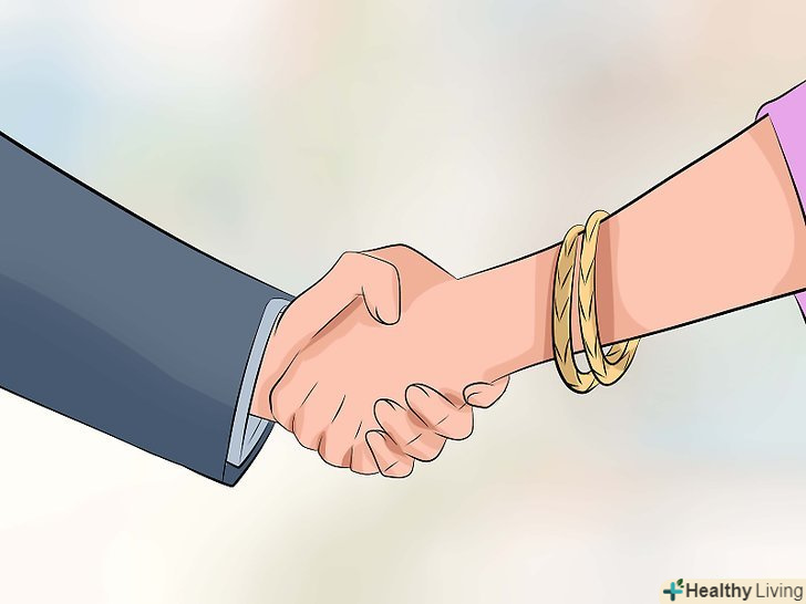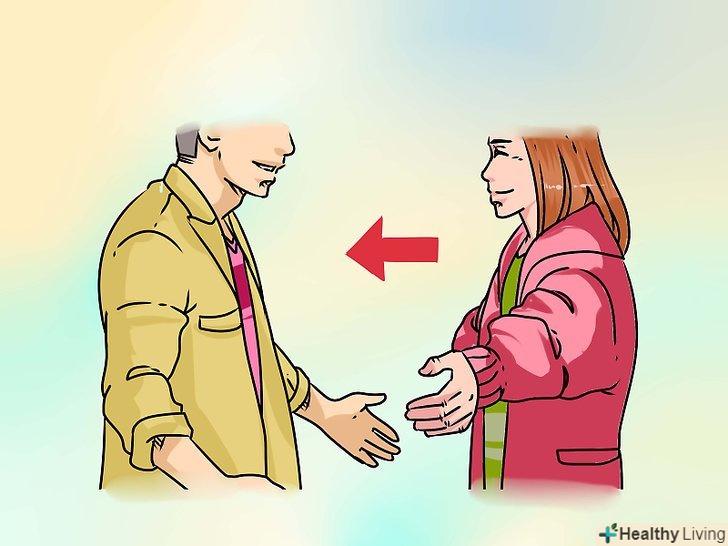 Якщо ви не хочете обіймів з кимось, ви можете посміхнутися і простягнути людині руку, щоб привітати його. якщо ви не хочете обійматися з людиною з будь-якої причини, наприклад, через те, що молода людина дуже любить це робити, ви можете взяти ініціативу в свої руки і простягнути руку для привітання. Подивіться людині в очі, посміхніться і простягніть руку. У рідкісних випадках, коли хлопець проявляє зайву наполегливість, ви можете направити його руку своєю вільною рукою, щоб показати йому, що ви не хочете нічого, крім рукостискання.- Якщо ви насправді не хочете, щоб молода людина обіймав вас, посміхніться і скажіть: «Як я рада бачити тебе, дозволь мені потиснути твою руку». [6]