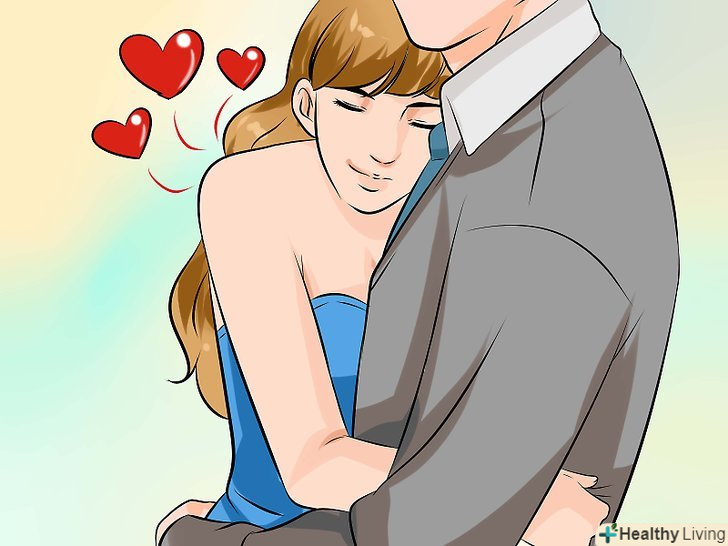 Притуліться до нього. коли ви обійняли молодого чоловіка, обхопивши його шию або груди руками, притуліться до нього. Це вважається дуже близьким обіймом "серцями". Якщо ви Вище Вашої молодої людини, ви можете покласти голову йому на плече. Якщо Ви нижче, розгорніться так, щоб ваша щока була на грудях молодої людини.