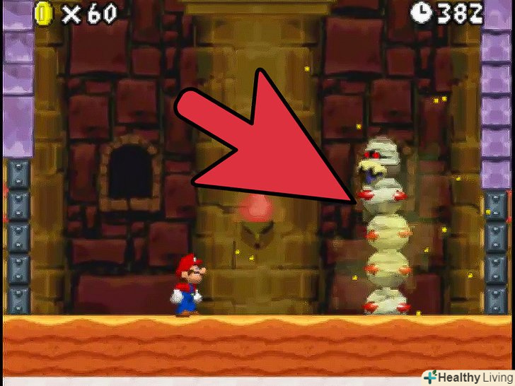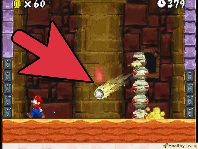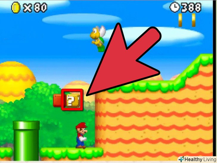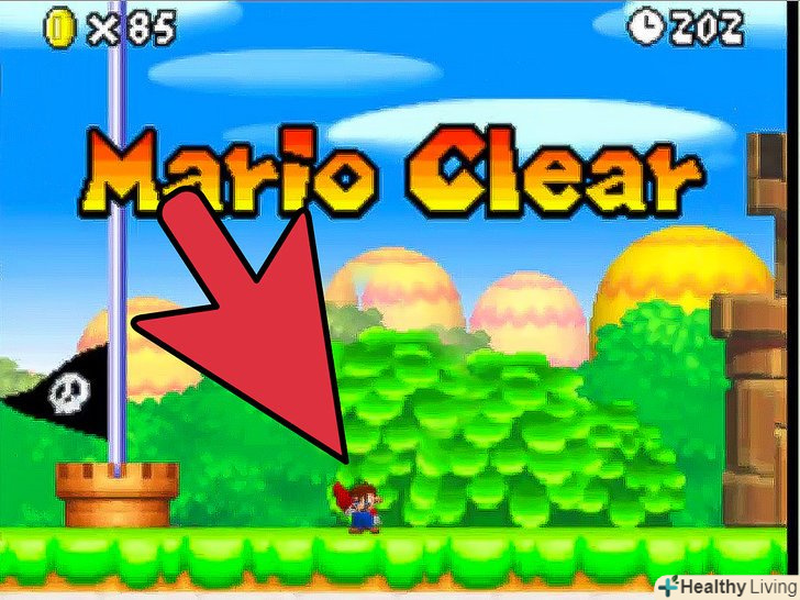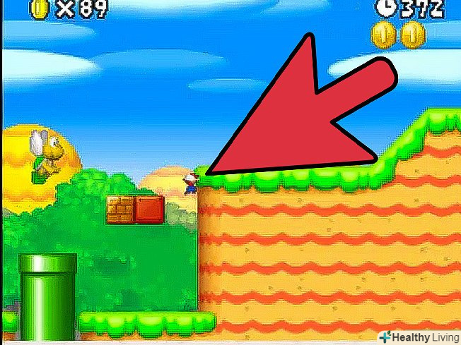 Знову зіграйте level і отримаєте підживлення Mini Mushroom. переконайтеся, що з'явився міхур у нижньому правому куті; це означає, що ви зберегли підживлення для подальшого використання. Знову пройдіть level. Тепер ви можете стати великим, але не міняйте міні в правому куті.