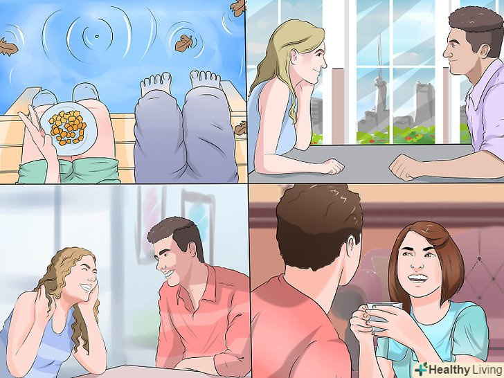 Регулярно проводьте час разом. зазвичай чим більше часу люди протилежної статі проводять разом, тим вище ймовірність взаємної симпатії. Перш, ніж приступати безпосередньо до спокушання, важливо регулярно бачитися один з одним. Запропонуйте людині зустрітися, якщо ви рідко проводите час разом. Навіть просте дружнє спілкування підвищує шанси на успіх.- Можна бачитися в компанії, але в такому випадку ймовірність близькості знижується. Зустрічі один на один – це зовсім інше, оскільки так дві людини приділяють час безпосередньо один одному.