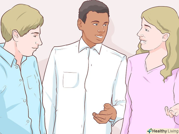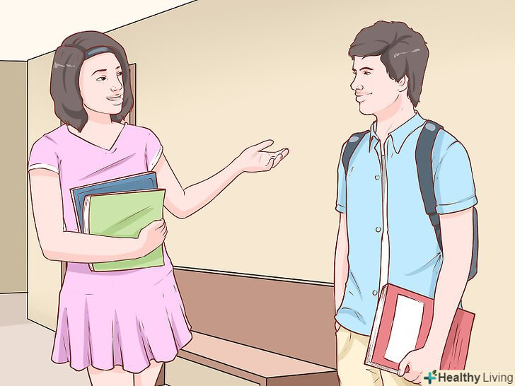 Заведіть розмовуЗі своїми однокласниками. почати розмову з кимось, кого ви не дуже добре знаєте, може бути важко. Проте, дружелюбність і вміння зав'язувати розмову допоможе вам заслужити повагу. Це досить просто, можна розповісти про забавну подію або запитати про завдання або проект.- Наприклад, скажіть: "Я так втомився. Вчора ввечері довелося довго прибирати, тому що моя собака перекинула банку з фарбою у вітальні!"