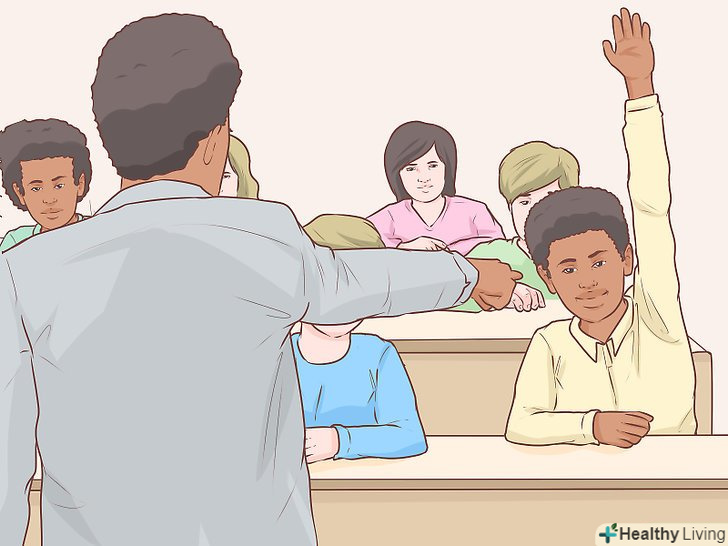 Будьте активним під час занять. кожен знає, що активна участь в обговоренні на уроці дозволяє залучити вніаніе однокласників до своєї персони. Якщо вам складно відповідати на питання вчителя, спробуйте самі задавати питання. Інші учні, у яких виникали подібні думки, але вони не наважувалися їх озвучити, будуть раді, що Ви підняли тему. [8]