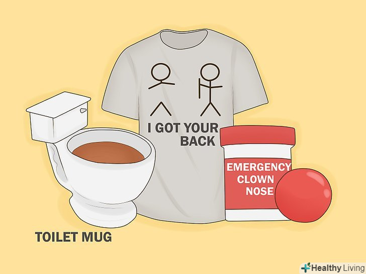 Подаруйте те, що розвеселить вашого друга. Якщо ви переживаєте, що не зможете вибрати подарунок, який сподобається Вашому другу, подаруйте те, що змусить його посміхнутися; якщо ваш друг розсміється – це значить, ви вибрали те, що треба! Ви можете піднести те, що подарує позитивні емоції. Однак будьте обережні, щоб не створити невірне уявлення про свої наміри. Нижче наведено лише кілька ідей:- Комедійні фільми.