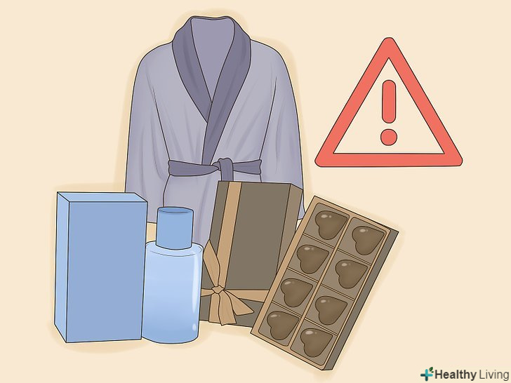 Не даруйте подарунки, які дарують один одному кохані. незалежно від того, які ваші наміри, деякі подарунки можуть бути розцінені як романтичний жест. Не варто дарувати другу подарунок на День Святого Валентина, якщо у вас просто дружні стосунки. Наслідки за порушення цього правила можуть бути плачевними (особливо, якщо ваш друг має кохану), тому будьте обережні! Нижче наведено кілька прикладів подарунків, які можна назвати "романтичними": [2]- Туалетна вода