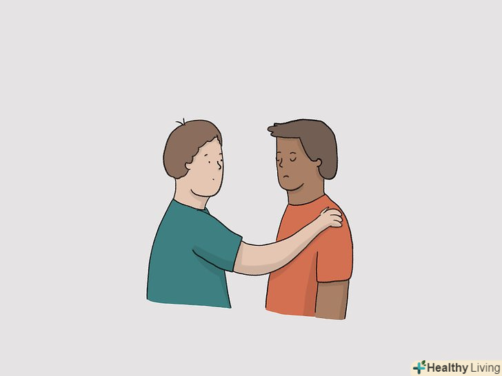 Підтримайте друга, якщо він каже, що не хоче розмовляти. якщо людина, яка переживає непрості часи, каже, що не хоче зараз розмовляти про свої почуття, це може зачепити. Ви ж хочете бути хорошим другом і допомогти людині, але здається, що ви не зможете зробити цього, якщо він не відкриється вам. Це може бути непросто, але найкращий варіант поведінки в такій ситуації — просто дати другу необхідний особистий простір. [10]- Скажіть йому: "нічого страшного. Я не буду тиснути на тебе, якщо ти не хочеш говорити. Просто знай, що я поруч і готовий вислухати, якщо пізніше ти вирішиш кому-небудь виговоритися».