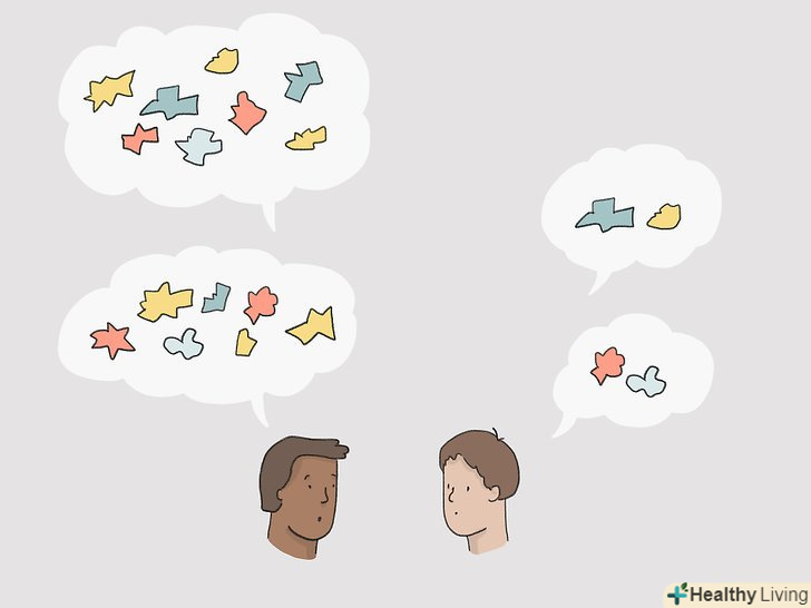 ВчітьсяАктивно слухати . активне слухання — це набір прийомів, які ви можете використовувати, щоб показати другу, що ви залучені в те, що він говорить. Воно грунтується на відкритій мові тіла, утриманні від висловлювання непрошених суджень або порад, а також вираженні активного інтересу до того, що говорить ваш друг. [11]- Періодично перефразуйте слова одного в ході розмови. Це дасть йому зрозуміти, що Ви уважні до того, що він говорить.
