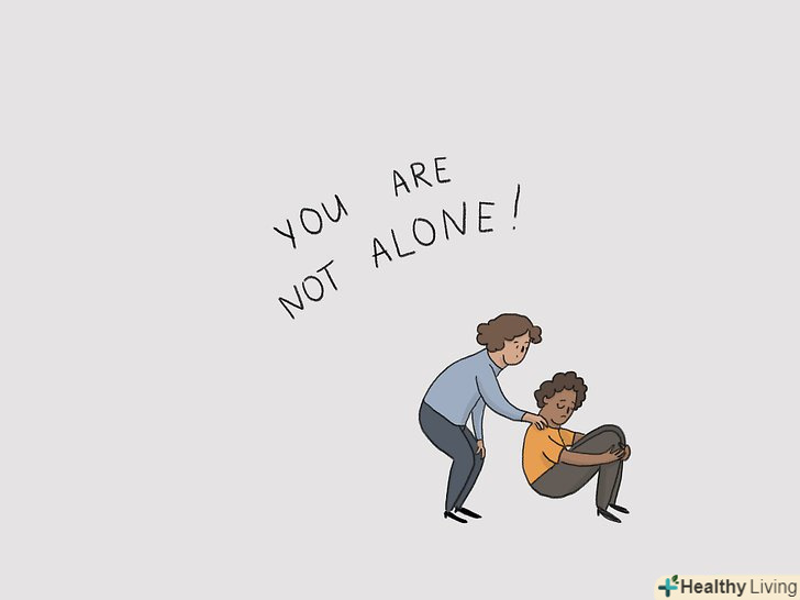 Скажіть другу, що він не самотній. можливо, ви не можете точно зрозуміти, через що доводиться проходити вашому другові, але ви все ж можете повідомити йому, що ви поруч і він може розраховувати на вашу підтримку. Дайте йому знати, що він не один і що ви завжди готові вислухати і допомогти, коли б в цьому не виникла необхідність. [6]- Іноді буває корисно поділитися історією про той час, коли ви переживали важкі емоції і просили про допомогу. Це дозволить вашому другові зрозуміти, що неприємні труднощі бувають у кожного і що немає нічого поганого в тому, щоб звернутися за допомогою.