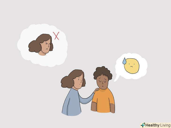 Задавайте відкриті питання. правильні питання допоможуть вам зрозуміти, що переживає ваш друг, а Вашому другу — вилити власні емоції. Спробуйте задавати відкриті питання, щоб заохотити друга говорити про те, що він думає і відчуває, замість того, щоб зондувати деталі. [7]- Таке питання як: "що ти зараз відчуваєш?"- дає більше простору для вираження емоцій, ніж питання: "ти злишся?»