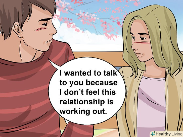 Не розтягуйте розмову. ще раз, найкраще бути чесним і прямолінійним. Ви не принесете партнеру ніякої користі, ходячи навколо та близько і не підступаючи до основної теми. Почніть розмову з прямого оголошення про те, заради чого прийшли:»я хотів поговорити з тобою, тому що мені здається, що наші відносини вичерпалися". А тепер продовжуйте розмову, при цьому зробіть його максимально коротким.- Розлучитися з людиною може бути досить важко, але тут важливі, перш за все, зібраність і спокій. Таким чином, ви зможете висловитися коротко і точно. Надмірна емоційність може заплутати вас і партнера. Не пошкодуйте часу емоційно підготуватися до розмови, прокрутивши подумки можливий сценарій. [7]