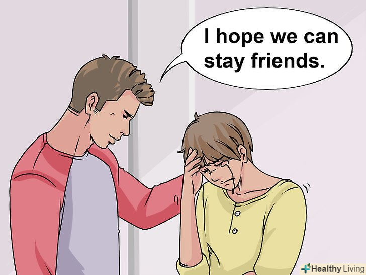 Якщо хочете, Запропонуйте залишитися друзями. пропонуючи якусь втіху в кінці відносин, ви зменшуєте удар. Якщо можна, Запропонуйте колишньому (колишньої) залишитися друзями. Скажіть щось на кшталт: "сподіваюся, ми зможемо залишитися друзями». Тим не менш, майте на увазі, що багато людей відмовляються бути друзями після розриву відносин. Якщо ви сумніваєтеся, що зможете спокійно дружити з цією людиною після розриву відносин, то краще не пропонувати цього. [9]