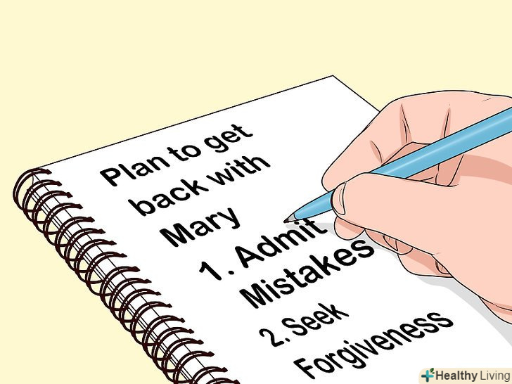 Складіть план вирішення проблеми. усвідомили суть проблеми? Рішення за вами. Якщо проблем кілька, необхідно знайти і кілька рішень, або одне всеосяжне рішення, яке дозволить вирішити кожну з них. Якщо відносини розірвані, тому що ви проводили занадто багато часу з друзями, Знайдіть можливість приділяти дівчині більше уваги, влаштовуючи щотижневі вечірні побачення і підшукуючи більше спільних занять. А якщо причиною стала ваша нездатність до нормального спілкування, внесіть чесність і співчуття в повсякденні відносини.- В першу чергу потрібно попрацювати над собою. Ясна річ, що Ви були небездоганні у відносинах.