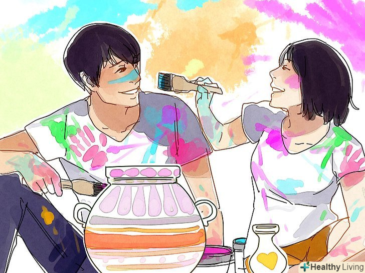 Смійтеся разом з партнером. сміх безумовно заразний і допомагає людям відчувати себе більш невимушено і розслаблено. [1] сміх і почуття гумору допомагають зняти напругу у відносинах і впоратися з неминучими злетами і падіннями спільного життя. Знайдіть те, що неодмінно сподобається вашому партнерові і розвеселить його.- Пам'ятайте про моменти, які Вас розсмішили протягом дня, і поділіться ними з партнером, коли повернетеся додому.