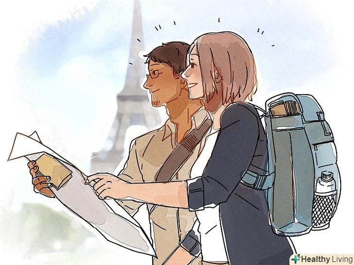 Сходіть кудись разом. Спільна поїздка може зблизити пару, особливо коли увага зосереджена на відносинах і один одному. Поїздка дозволить переключити увагу від щоденних факторів стресу на партнера і ваші відносини. [14] ви можете спробувати здійснити подорож мрії або просто провести хороші вихідні за містом. Складіть список тих місць, в яких ви обидва завжди хотіли побувати, і виберіть те, яке сильно подобається вам обом. Кожен день робіть кроки, які наблизять вас обох до того місця. І нарешті, намагайтеся створити нові спогади, зробити фото і зняти відео, щоб пізніше ви могли знову пережити спогади.- Ви можете відправитися в піший похід або кемпінг, щоб насолодитися прекрасним відпочинком на природі або спланувати шикарну відпустку на курорті високого класу. Міжнародні поїздки можуть бути захоплюючим досвідом для вас двох!