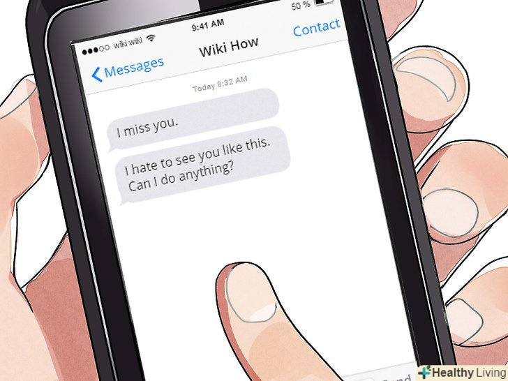 Нехай партнер знає, що ви поруч. навіть якщо це недовга розмова, вкрай важливо підтримувати зв'язок один з одним. Нагадайте партнеру про свої почуття і що ви поруч, коли він потребує вас. Надсилайте повідомлення, щоб показати свій рівень зацікавленості у відносинах, це також допоможе стати ближче. [2] не забувайте говорити:- " я люблю тебе»