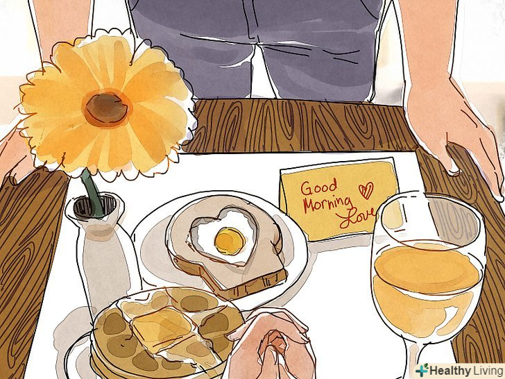 Робіть "приємні дрібниці". наприклад, напишіть записку, щоб проявити свої почуття, викиньте сміття або приготуйте вечерю, коли кохана людина втомився. Ці невеликі вчинки показують, що ви дбайливо ставитеся до партнера. Такі приємні дрібниці часто залежать від конкретної пари, тобто не знайдеться двох пар, яким би подобалися одні і ті ж маленькі жести. Головне-бути щирим у своїх вчинках, щоб вони виходили з самого серця. [4]- Якщо ви і ваш партнер віддаєте перевагу кінофільми, сплануйте особливий вечір кіно для вас двох з улюбленими закусками.