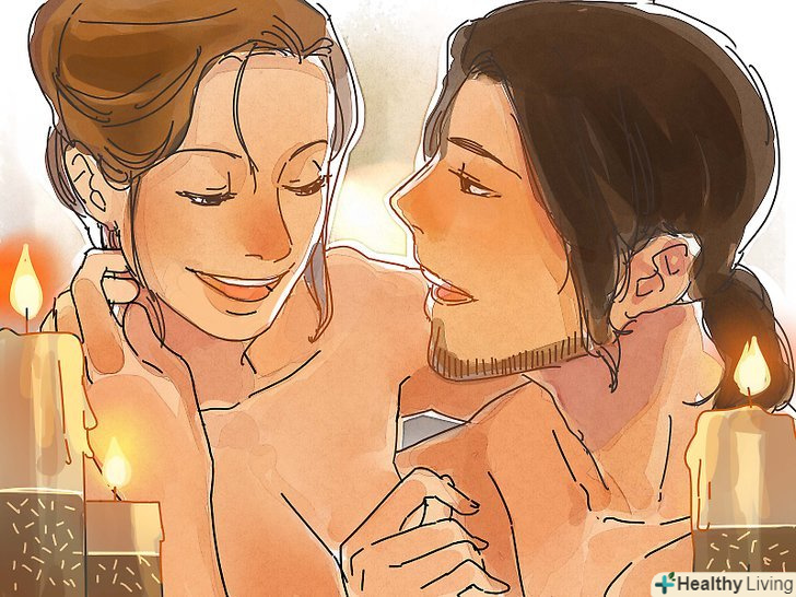 Внесіть невеликі зміни, щоб урізноманітнити сексуальне життя і розпалити пристрасть в ліжку. якщо ви живете разом, приберіть непотрібні речі з вашої спальні, тобто дитячі іграшки, документи і розкидану по підлозі одяг. Розставте свічки, купіть нові простирадла — зробіть все, що потрібно, щоб привнести інтимну обстановку в вашу спальню. [10]- Якщо ви засинаєте перед телевізором, подумайте про те, щоб прибрати телевізор, ноутбук та іншу електроніку зі спальні. Домовтеся відключати електронні пристрої, коли ви удвох в спальні, щоб створити в ній інтимну атмосферу.