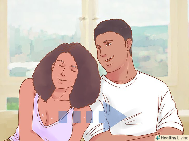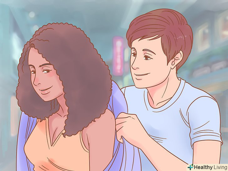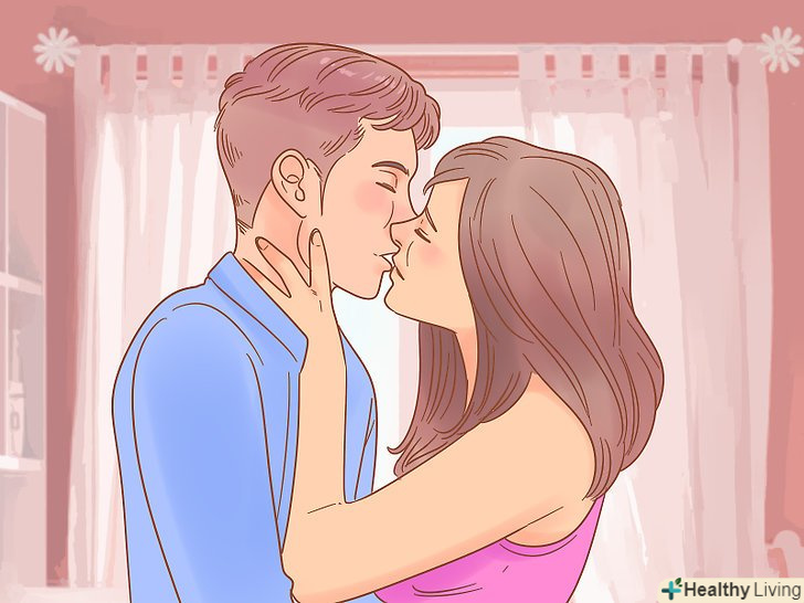 Трохи Наблизьтеся до нього. Вам потрібно зблизитися, щоб поцілуватися . Чим менше відстань між вами, тим легше хлопцеві буде зважитися на поцілунок. Тому Наблизьтеся до нього. Як тільки настане відповідний момент, Наблизьтеся до його обличчя і з очікуванням на нього подивіться. Можна спробувати зробити такі рухи, ніби збираєтеся поцілувати його. [8]- Наприклад, обійміть його, і нехай це обійми буде дуже чуттєвим і довгим. Перш ніж припиняти обійми і прибирати руки, нахиліть до нього голову. Таким чином, у хлопця буде можливість поцілувати вас.