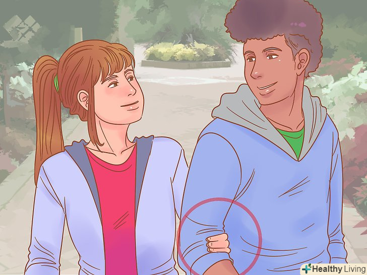 Подолайте бар'єр дотиків. якщо хлопець ще жодного разу не доторкнувся до вас, не варто чекати, просто зробіть це самі! Наприклад, можна легенько торкнутися його руки або плеча під час розмови. Це дотик має бути дуже швидким, легким і безневинним, не варто розігрувати з цього велика подія. взяти його за руку - ще один спосіб зламати цей бар'єр. Простий дотик може зробити вас ближче. [3]