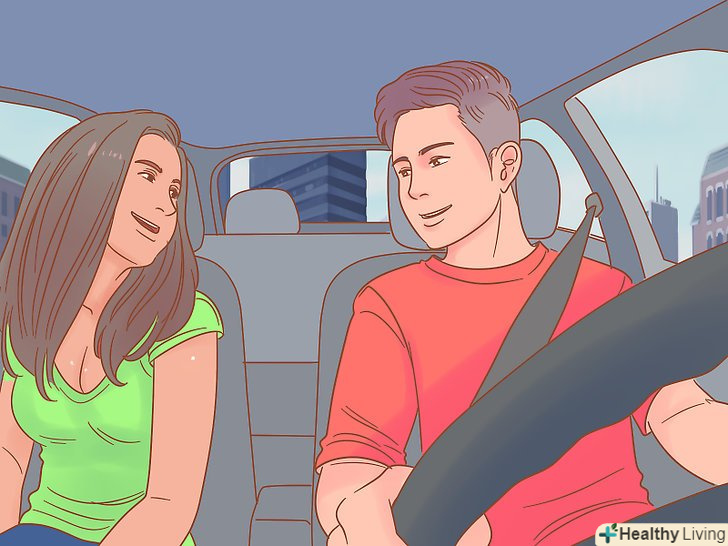 Трохи затримайтеся, коли будете прощатися. коли ви прощаєтеся після побачення, затримайтеся на момент. Якщо ви сидите в машині, не варто відразу ж вибігати. Просто сядьте поруч з ним і почекайте кілька секунд. Відстебніть ремінь безпеки і подивіться на хлопця. Якщо він проводжає вас до дверей, пару секунд повозіться з ключами. Це класична ознака того, що ви чекаєте поцілунку після побачення. Подивіться на нього раз або два, щоб дати йому можливість нахилитися до вас. [5]