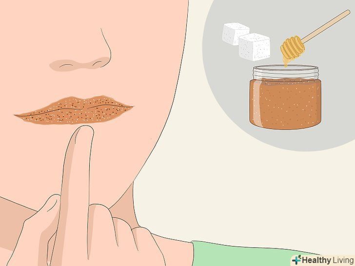 Відлущуйте губи раз на тиждень. ви може приготувати відлущуючий скраб з цукру і рідкого компонента. Оливкова, кокосова олія і мед добре підходять для скрабів на цукровій основі.- Ви можете наносити товстий шар на губи і терти їх невеликими колами за допомогою зубної щітки для додаткового очищення.