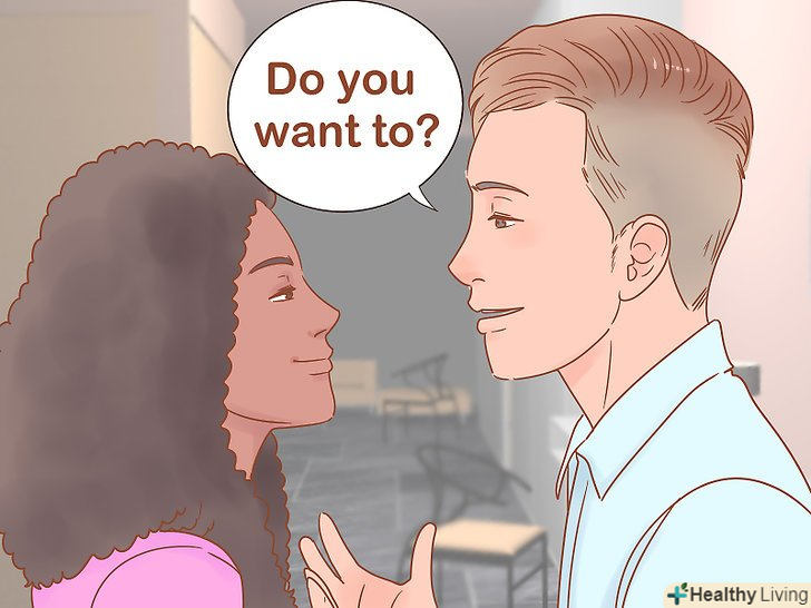 Якщо ви збираєтеся зайнятися сексом, спілкуйтеся так, щоб вас розуміли. можливо, вам захочеться відразу стрибнути в ліжко, як тільки ви побачите її в нижній білизні, але ви повинні бути абсолютно впевнені, що вона готова перенести все на інший рівень. Прямо запитайте її: "ти хочеш?"або" ти готова до цього?"Запитайте це неагресивним, тоном, дивлячись в очі і сповільнюючись, щоб вона зрозуміла, що ви чекаєте її відповіді.