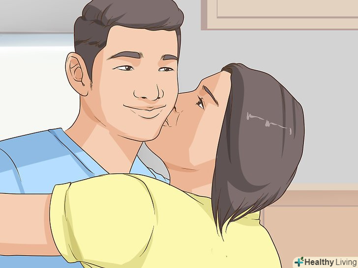 Обіймайте і цілуйте його. обіймайте його і цілуйте в щоку при зустрічі. Робіть те ж саме при прощанні і всякий раз, коли відчуєте бажання бути ближче до нього.- Спробуйте довго обніматися, щоб відчути додаткову близькість. Обійміть його і порахуйте до семи. Можливо, це обійми здасться довгим, проте отримувати люблячі обійми від дорогої людини дуже приємно. [10]