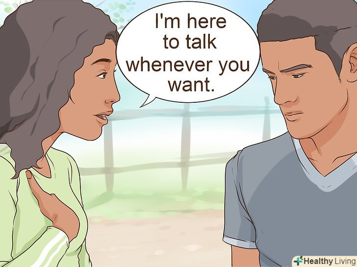 - Дайте йому зрозуміти, що ви поруч, щоб допомогти. Можливо, він чітко позначить, що хоче побути один або йому потрібно поговорити з кимось ще. Якщо ви не впевнені, промацайте грунт або уточніть, чим ви можете допомогти. Спробуйте сказати:»якщо ти захочеш поговорити, я буду поруч в будь-який час".