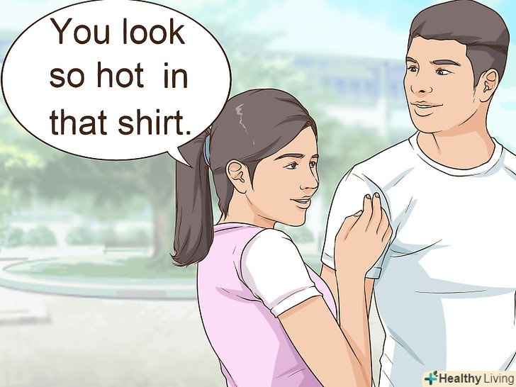 Робіть йому компліменти. всім подобається відчувати себе привабливими та особливими. Розкажіть хлопцеві, що вам в ньому подобається. Відзначте його статура, навички або інтелект.- Щиро робіть компліменти. Наприклад, якщо він одягнув сорочку, яка йому дуже йде, доторкніться до його плеча і скажіть: «Ти виглядаєш так сексуально в цій сорочці». [7]
