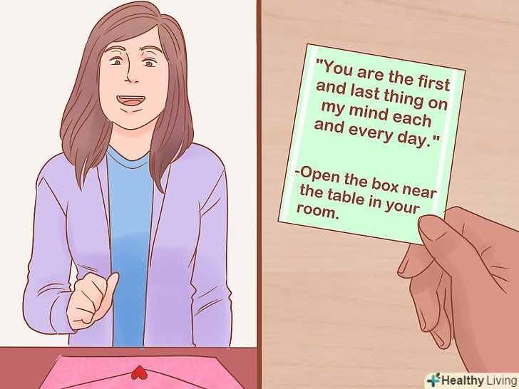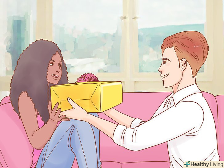 Даруйте несподівані, продумані подарунки. так, подарунки — це хороший спосіб завоювати серце жінки, проте недостатньо просто завалювати її всім підряд. Подарунок повинен показати дівчині, що вона вам небайдужа і ви вважаєте її особливою. Не потрібно робити подарунок, який підійшов би для вашої колишньої або для сестри. Подаруйте обраниці те, що має для неї велике значення. [9]- Спробуйте подарувати їй що-небудь в її улюбленому кольорі, щось, що за її словами їй подобається або чого вона потребує, або (найкраще) що-небудь, що нагадує вам про важливі моменти, які ви пережили разом, або про жарт, зрозумілою тільки вам двом.