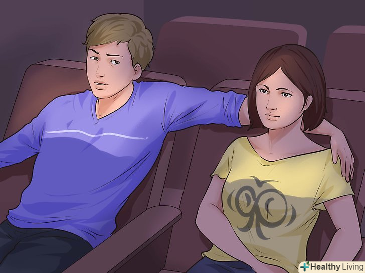 Злегка торкайтеся один до одного. коли ви близько сидите один до одного, ви можете починати торкатися. Ви можете триматися за руки, переконавшись, що гладите пальці, замість того, щоб ваші руки висіли як безмовні риби. Ви також можете ніжно гладити один одному коліна і руки, це приведе вас до більш інтимного етапу.- Пам'ятайте, що потрібен час. Ви не повинні триматися за руки відразу після початку фільму. Робіть все природно, замість того, щоб поспішати – коли ви будете вести себе природно, Ви все зробите правильно.