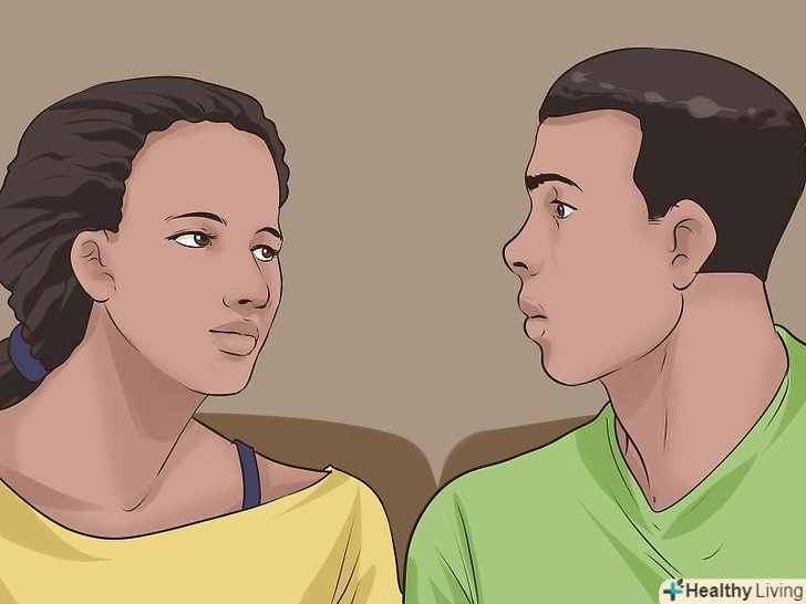 Встановіть контакт очима. хоча це і важко, так як ви повинні дивитися прямо, стежити за фільмом, до того ж, вам буде важко цілуватися, не дивлячись один на одного. Після того, як ви почнете торкатися один одного, або навіть якщо ви будете жартувати про фільм, ви можете повільно повернутися один до одного і встановити контакт. Це дозволить вашому партнерові дізнатися, що ви очікуєте більше, ніж просто перегляд фільму.- Прикрийте на секунду очі і подивіться в сторону. Як варіант, ви можете затримати погляд на партнері, щоб він знав, що ви готові до поцілунку.