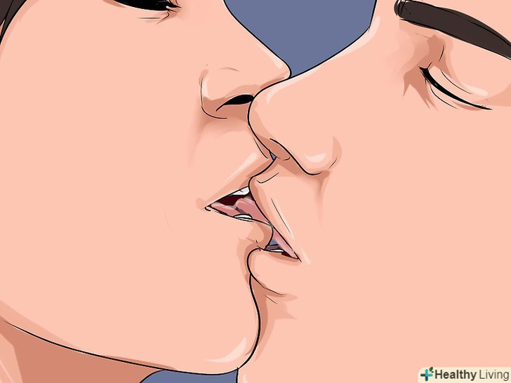 Трохи стисніть губи. стисніть губи разом, і насолоджуйтеся відчуттям губ партнера. Ви можете розташувати одну губу поверх губ партнера, а другу – між його губ, так що вони будуть разом замість того, щоб ваші губи були зверху. Ви можете просто почекати так кілька секунд, не чекаючи більшого. Не стискайте губи занадто сильно, але розслабте і насолоджуйтеся ніжним дотиком.