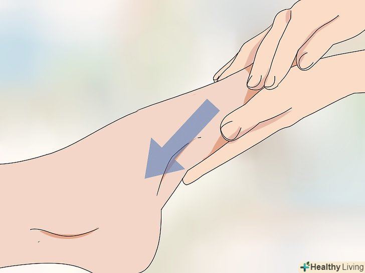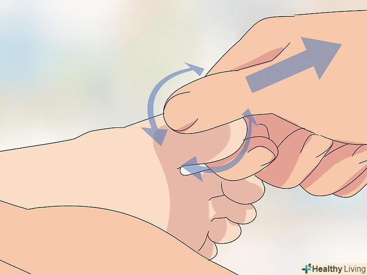 Масажуйте її щиколотку великим і вказівним пальцями. акуратно стискайте порожню область нижче щиколотки протягом п'яти-десяти секунд. Потім обома руками зробите кругові рухи навколо зовнішньої сторони надпяточной кістки. В процесі надавайте рівномірний тиск. [11]