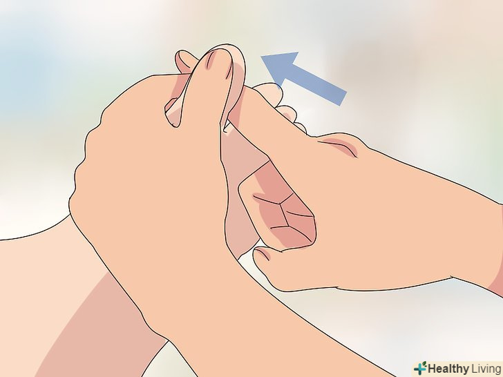 Крутите, стискайте і витягайте кожен палець ноги, акуратно натискаючи. міцно обхопіть її стопу однією рукою. Іншою рукою акуратно затисніть її великий палець ноги біля основи між своїми великим і вказівним пальцями. Обережно прокрутіть палець в одну сторону, потім - в іншу, а після ніжно потягніть палець від стопи, затискаючи його пальцями і ковзаючи ними до кінчика. [9]- Повторіть те ж саме з іншими чотирма пальцями.