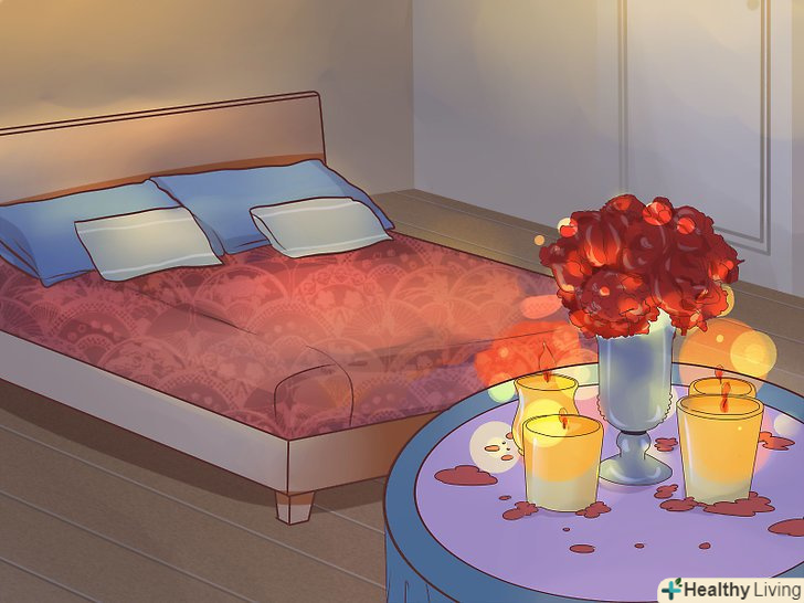 Створіть відповідну атмосферу. запаліть свічки, купіть шовкову постільну білизну і створіть в спальні затишну обстановку. Приберіть все, що може перешкодити вам налаштуватися (наприклад, брудний одяг, робочі документи, дитячі іграшки). [21]
