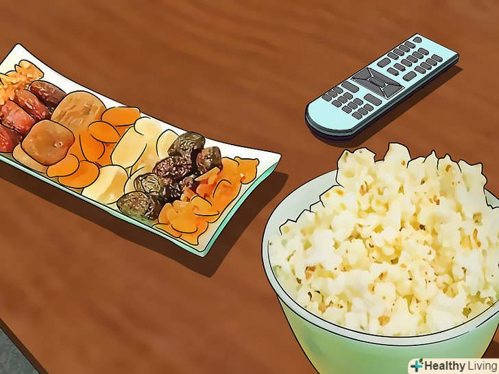 Купіть якісь закуски. Вийдіть і придбайте легкі страви, які вам обом подобаються. Попкорн (хоча дивіться попередження), чіпси та/або цукерки – непогані варіанти. Якщо вона на дієті або просто віддає перевагу більш здоровій їжі, краще взяти крекери, сухофрукти та/або овочі, які вам обом подобаються. І ще, якщо ви знаєте про певний ласощі, яке вона любить, не завадить запастися і їм. Вона оцінить те, що ви думали про неї. Не забудьте про напої. Можете запастися лимонадом або соком, але якщо вона – прихильниця здорового способу життя, то і звичайна вода підійде. І знову, якщо вона любить певний напій, подбайте про його наявність.