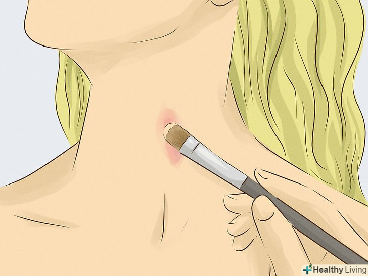 Використовуйте тональний крем. товстий шар макіяжу допоможе ефективно приховати засос. Просто переконайтеся, що тон ідеально підходить вашому кольору шкіри, і макіяж гармонійно приховує слід, інакше спроба маскування буде занадто очевидною. [6]- Засос величезних розмірів можна приховати театральним гримом.