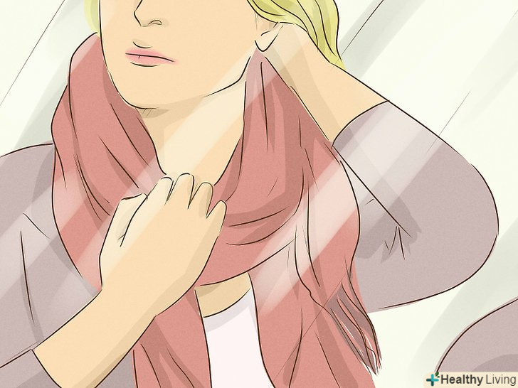 Одягніть шарф. Шарф або шийну хустку відмінно приховають засос і не викличуть зайвих питань. Обмотайте шарф навколо шиї; переконайтеся, що засосу не видно. Час від часу перевіряйте перед дзеркалом, чи не збився шарф. [7]- Якщо погодні умови дозволяють (на вулиці не стоїть тридцятиградусна спека), засос можна заховати під водолазкою. Якщо у вас довге волосся, можете розпустити їх.