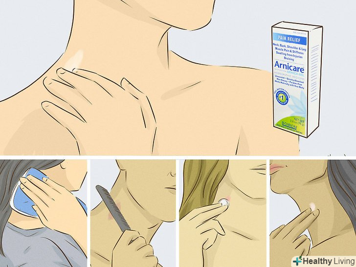 Прискорте процес загоєння. вважається, що мазь з арнікою ефективно загоює гематоми і синці, значить, ця мазь допоможе і від засосів. Існують і інші народні засоби: можна прикласти лід, потерти засос монеткою або гребінцем або нанести на нього зубну пасту. [8]- Всі ці методи (і багато інших) описані в статті як позбутися від засосу .