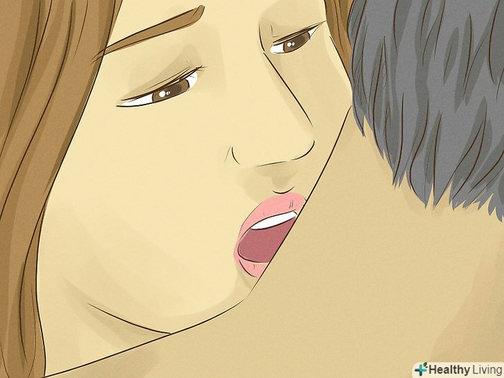 Злегка розімкніть губи і щільно притисніть ними до шиї партнера. уявіть, що ви робите губами букву «О», потім щільно притисніть губи до вибраного місця, щоб повітря не надходило до шкіри. Не морщіть рот, ваші губи повинні виглядати ніжно і спокусливо. [4]