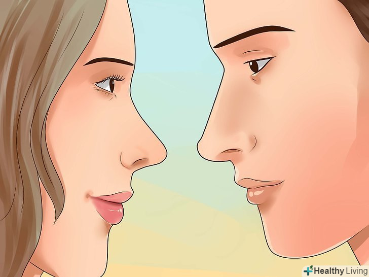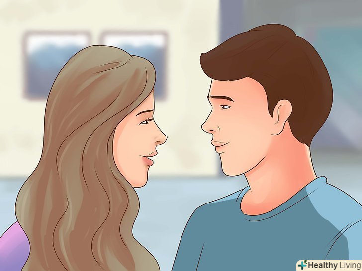 Подивіться йому в очі. Подивіться на нього щиро. Якщо він подивиться у відповідь, значить, він теж хоче поцілуватися. Повільно переведіть погляд з його очей на губи і нахиліться вперед.