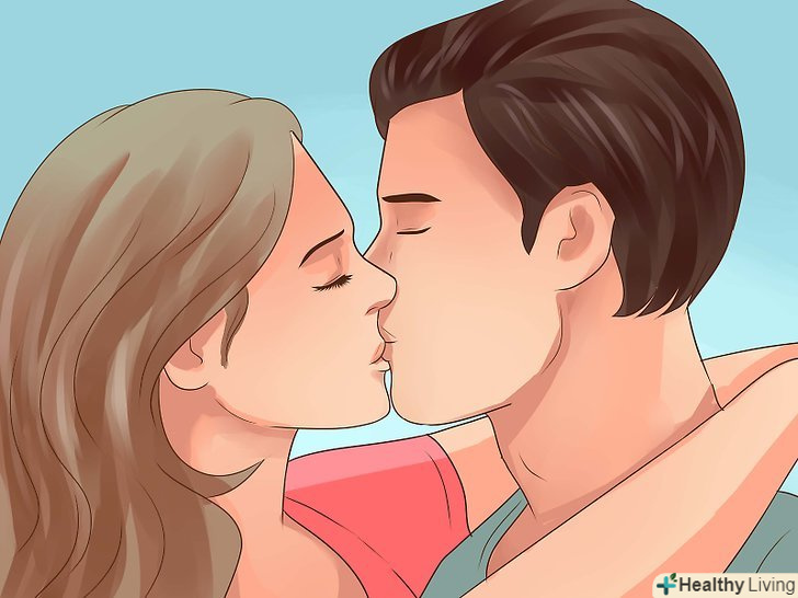 Нахиліться вперед, злегка поверніть голову вправо, після чого він повинен відповісти і нахилити голову вліво, потім поцілуйтеся протягом декількох секунд і повільно відсторонитеся. якщо після цього він знову почне нахилятися, значить, він хоче поцілуватися ще раз. Нехай буде так, але якщо він зайде занадто далеко, дайте йому знати. Злегка натисніть йому на груди, щоб усунути його від себе і скажіть, що вам незатишно.