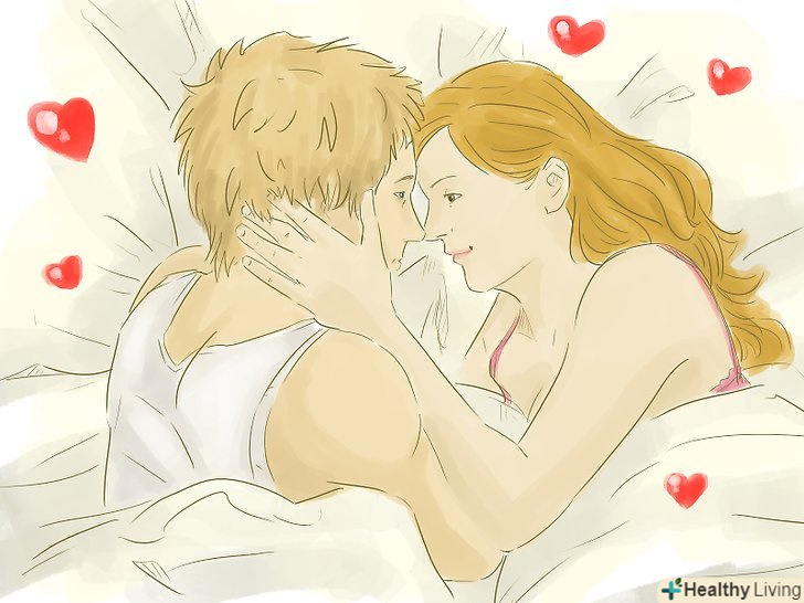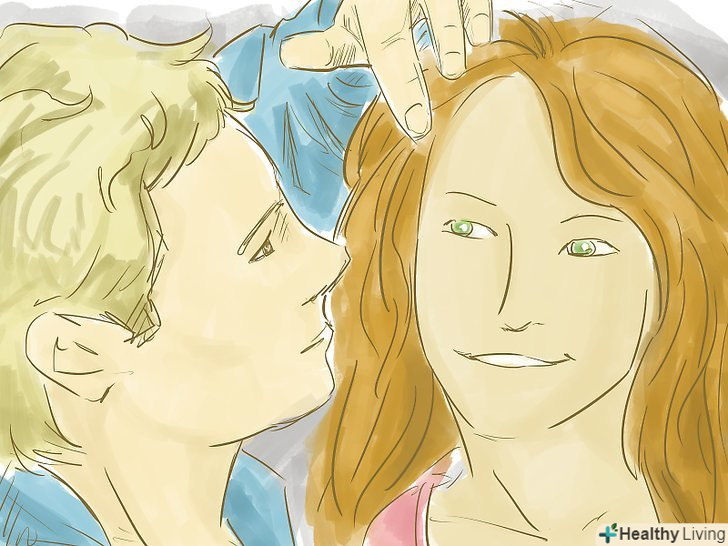 Неспішно цілуйте дівчину. замість швидких і коротких поцілунків в губи або щоку поцілуйтеся по-справжньому. Ніжно і повільно цілуйте дівчину хоча б 15 секунд. За цей час обидва партнери встигнуть розслабитися, а ваші дії покажуть, як сильно вам подобається некваплива близькість з дівчиною. [3]- Під час поцілунку спробуйте гладити дівчину по щоці, спині або волоссю. Відчуйте цей момент і розчиніться в ньому. Використовуйте поцілунки, щоб висловити своє бажання без слів.