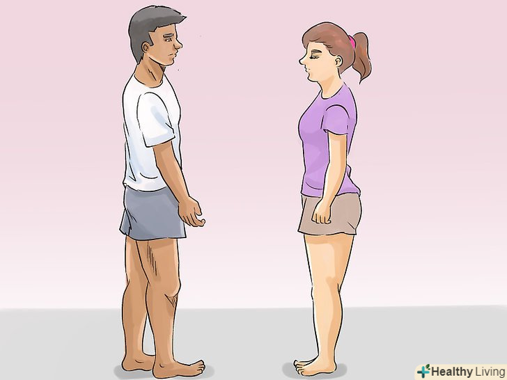 Попросіть дівчину встати перед вами. зазвичай захоплення пожежного використовується для перенесення постраждалих і травмованих людей в безпечне місце. Однак, якщо у вас немає відповідної професійної підготовки, вам краще зовсім не чіпати постраждалої людини. Проте, використовувати захоплення пожежного можна в цілях розваги зі своєю дівчиною. Спочатку попросіть дівчину встати перед вами лицем до лиця. [4]