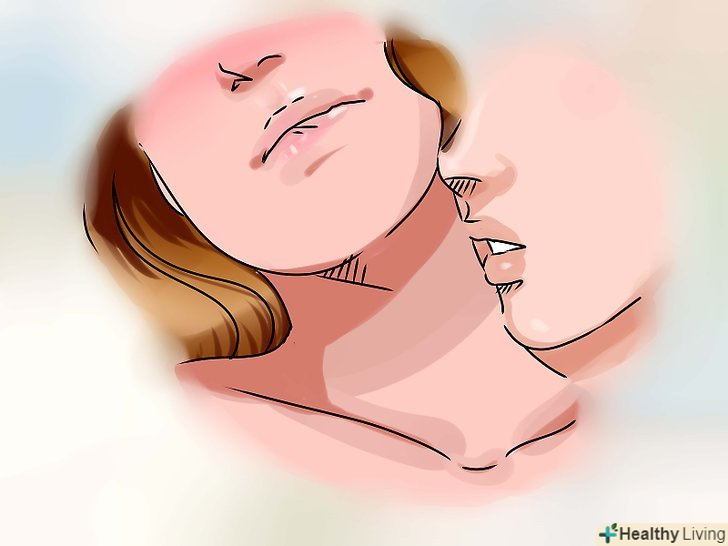 Використовуйте» ковзаючий " поцілунок. замість декількох швидких поцілунків спробуйте один, довгий і чуттєвий. Почніть з верхньої або з нижньої частини шиї і, не відриваючись, проведіть губами по всій її довжині, вгору і вниз. [7]- Оскільки подібний поцілунок більш тривалий в порівнянні з іншими, краще використовувати її в той момент, коли ви удвох залишитеся наодинці.