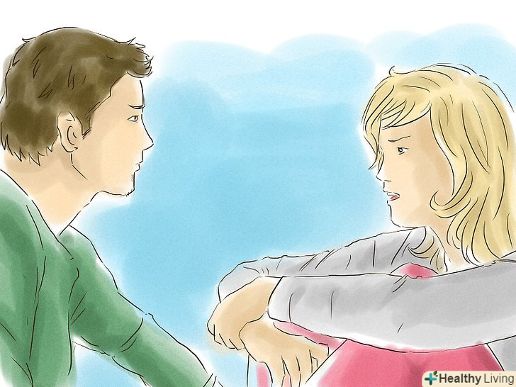Запитайте у неї, що сталося. навіть якщо ви точно знаєте, все одно краще запитати. Це допоможе уникнути проблем в разі, якщо ви неправильно зрозуміли ситуацію, і допоможе їй висловитися.- Будьте готові до того, що вона скаже, що нічого не сталося або спише все на втому або якусь незначну проблему. Якщо так і сталося, скажіть, що немає нічого страшного в тому, що іноді люди бувають в такому стані, і що ви завжди поруч, якщо вона захоче поговорити.