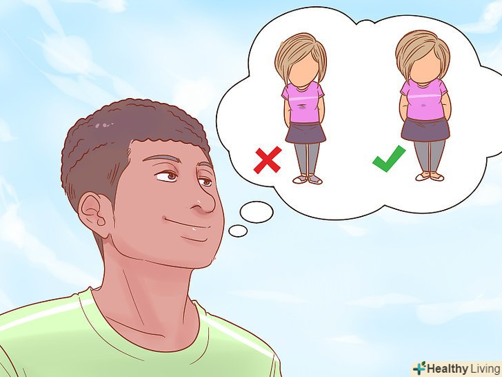 Уникайте образливих компліментів. є такі компліменти, які можуть здатися вам втішними, а насправді будуть сприйняті як образи. Перш ніж вам захочеться прикусити собі мову, подумайте про те, що ви хочете сказати і як це можна зрозуміти у відриві від контексту.- Якщо у вашій похвалі є хоч натяк на її втрачені кілограми, зупиніться. Це дуже легко зрозуміти. Замість цього, скажіть, якою здоровою, квітучою і сяючою вона виглядає.